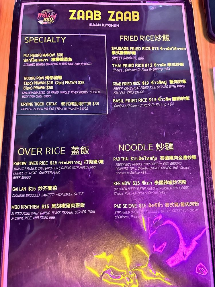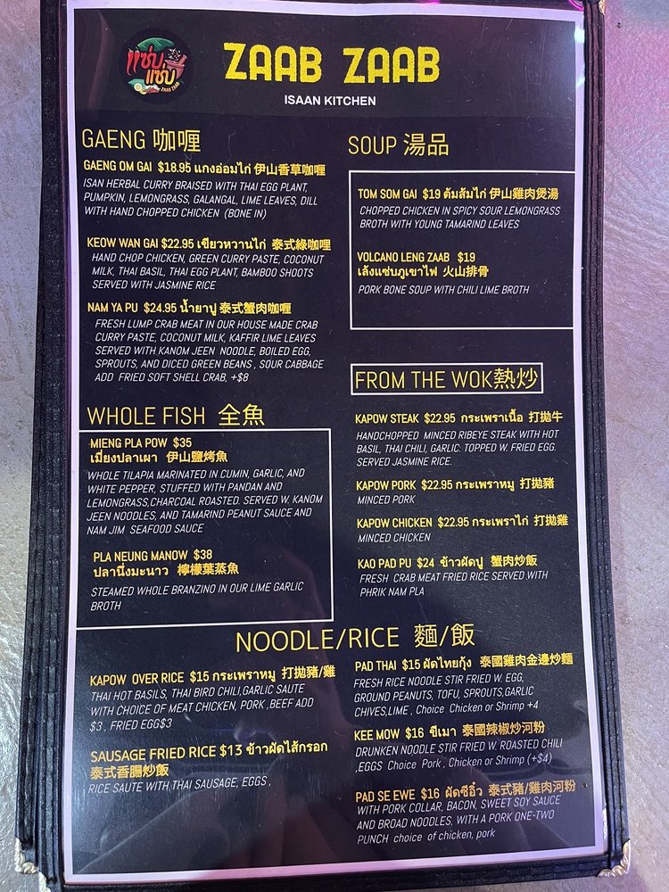 Welcome to Zaab Zaab Flushing, an authentic Thai dining experience nestled in the heart of Flushing, NY. This restaurant is revered for its vibrant flavor profiles and cozy atmosphere. The menu showcases an enticing array of dishes, from savory vegetable dumplings and crisp Kapow Fries to the standout Larb Moo, a classic dish bursting with herbs and spices.